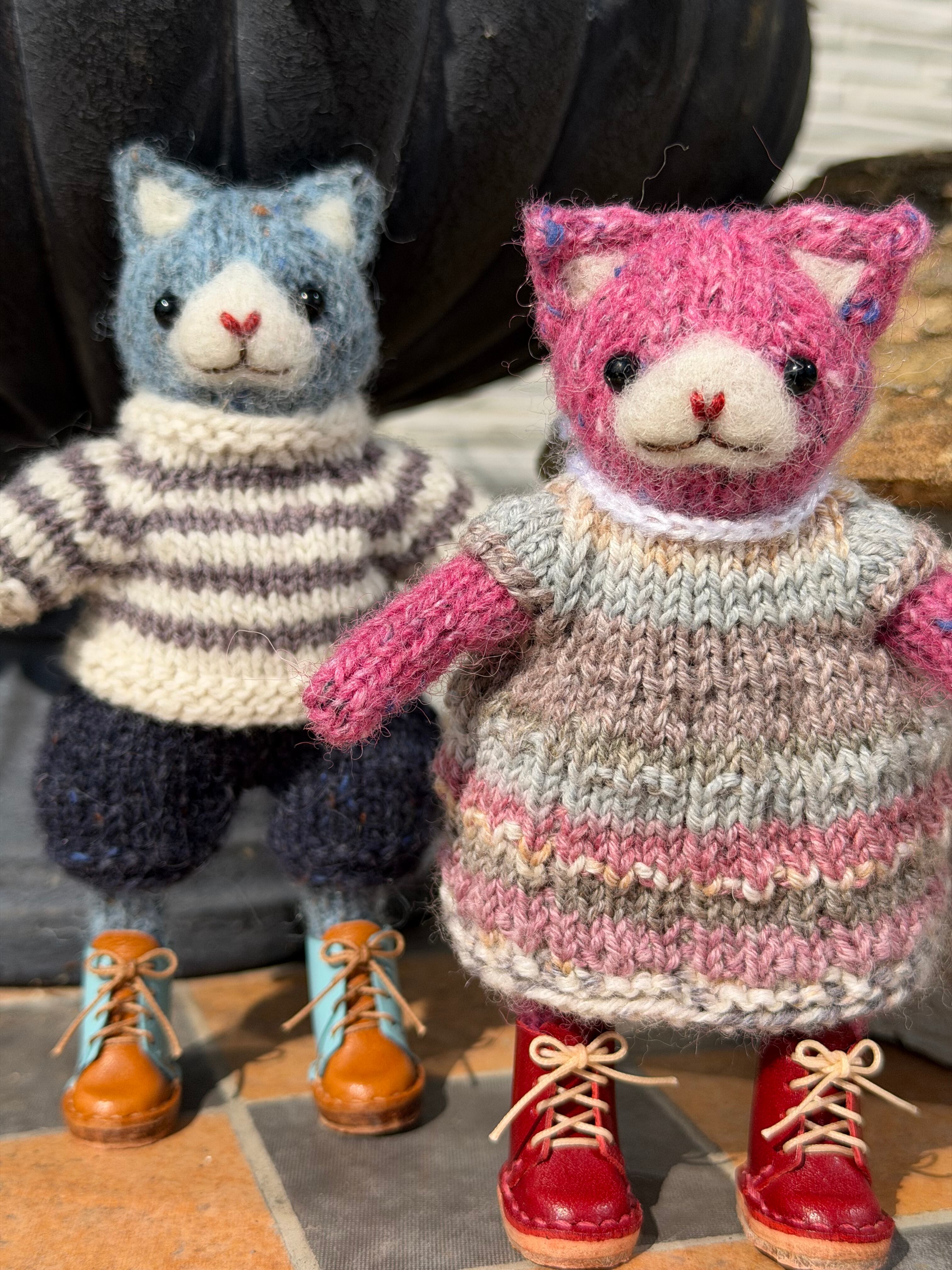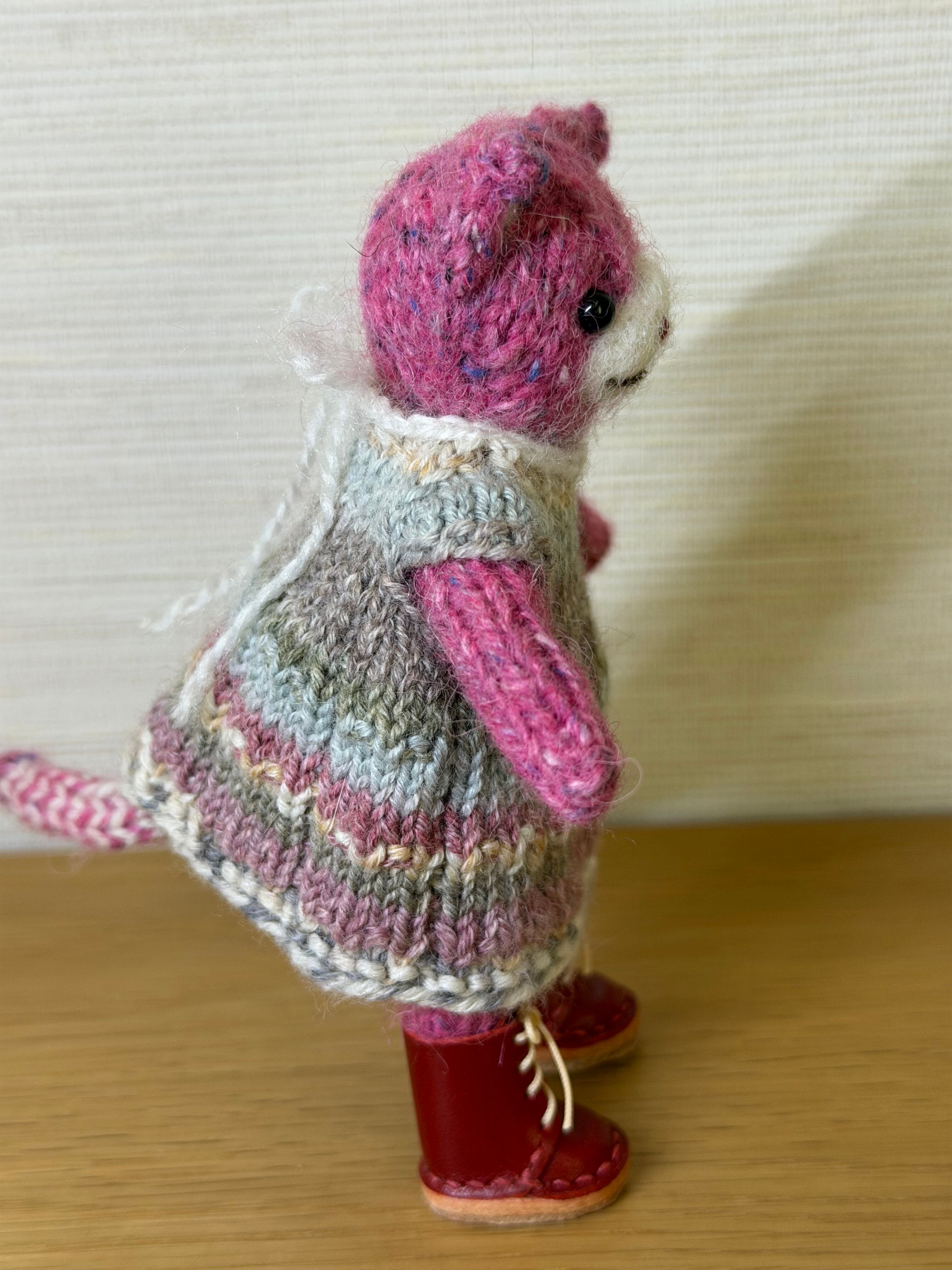 お洋服や靴の脱着時に、中のワイヤーが出てくることがありますが、毛糸を引っ張って中に押し込んで、形を整えてください