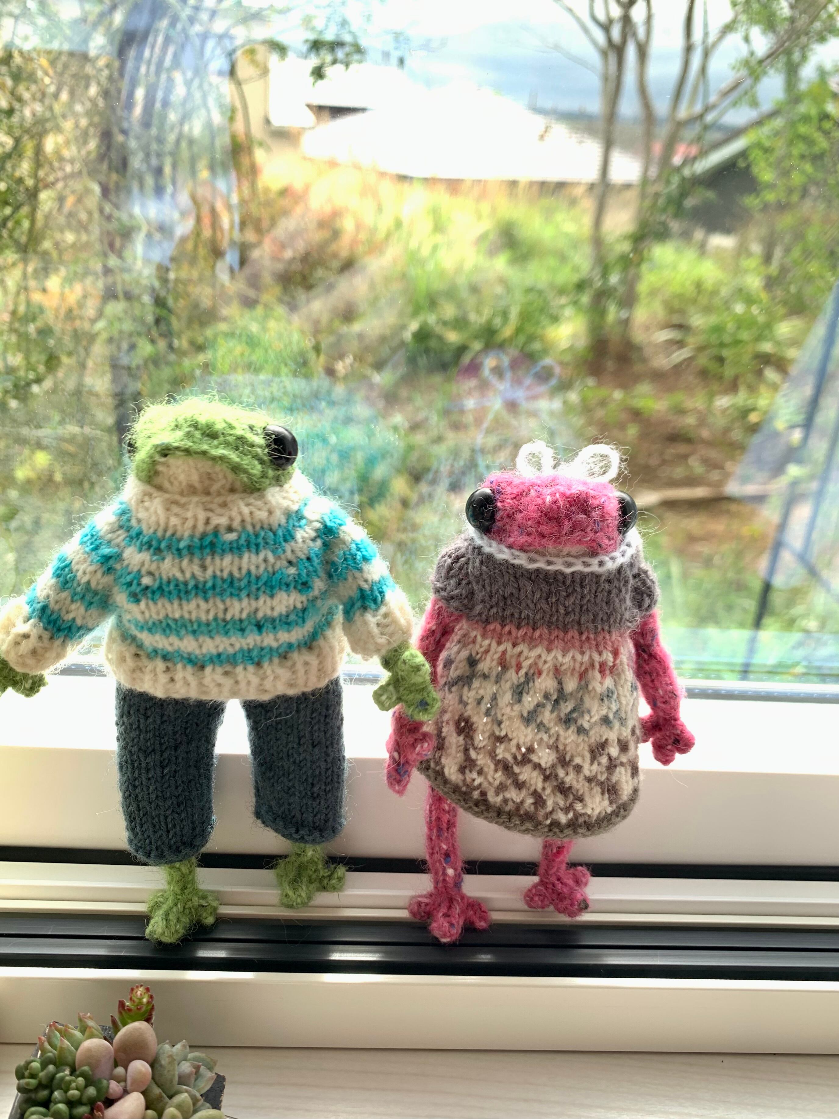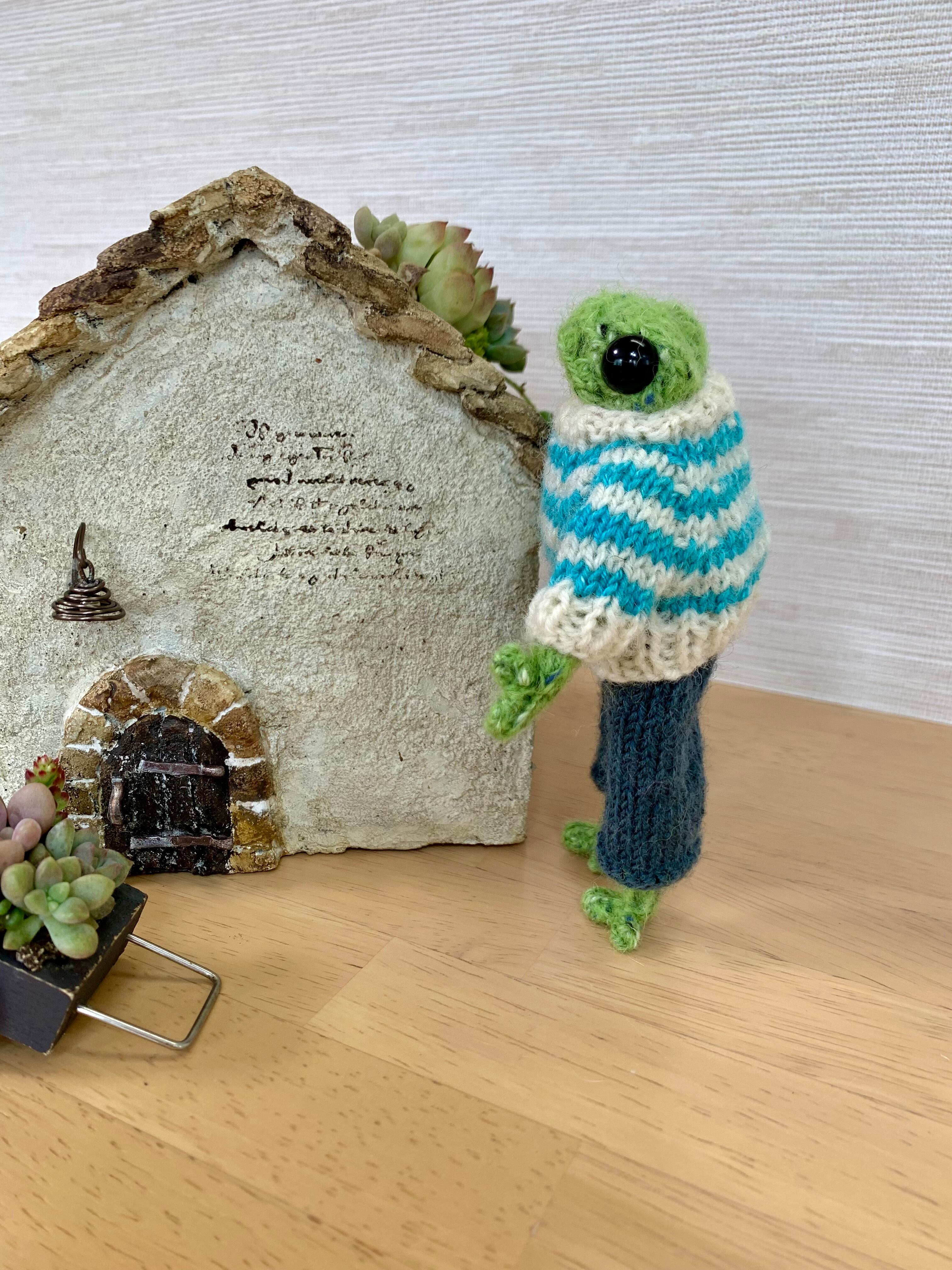 カエルの編み図は@dotpebbles_knitsさんのものを使用しました。