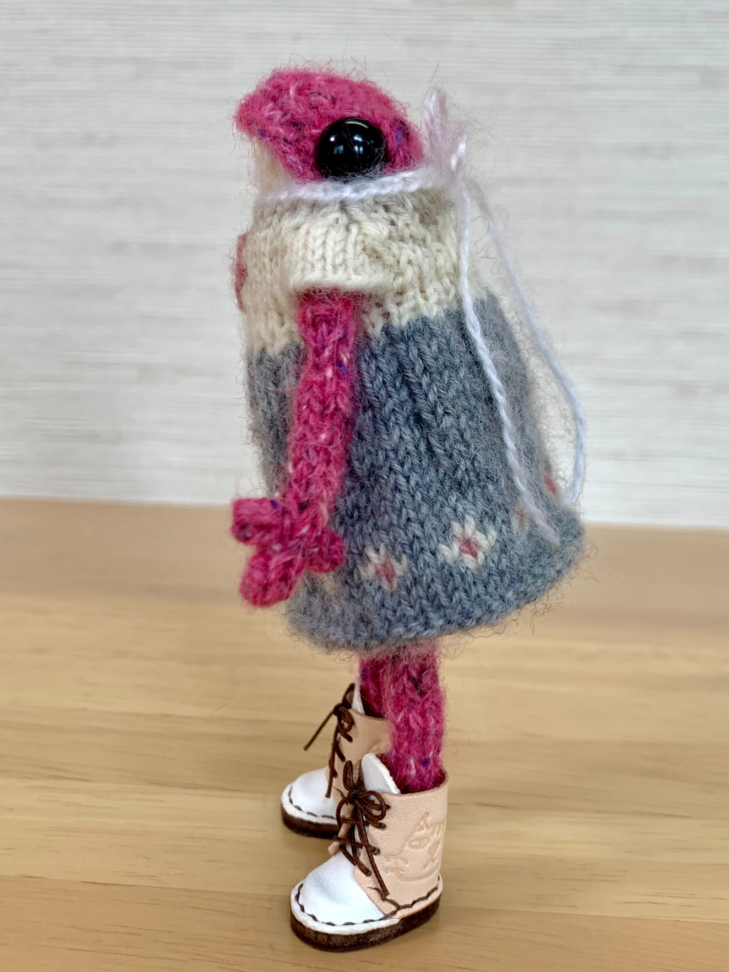 お洋服や靴の脱着時に、中のワイヤーが出てくることがありますが、毛糸を引っ張って中に押し込んで、形を整えてください。